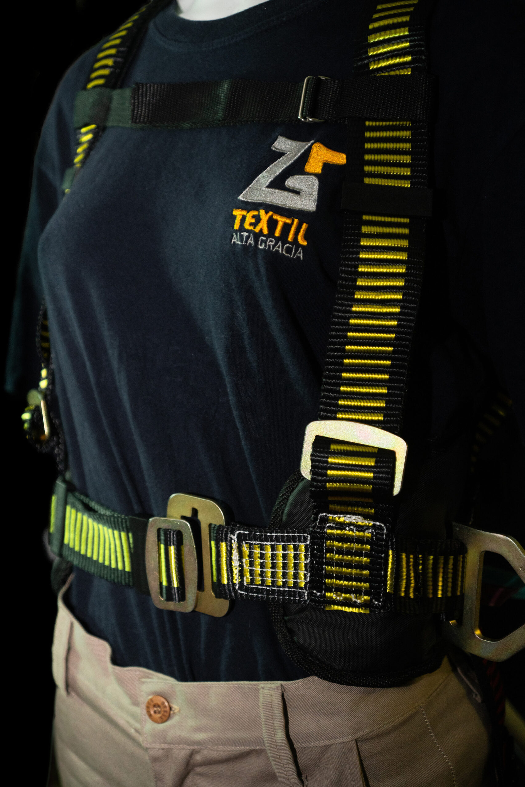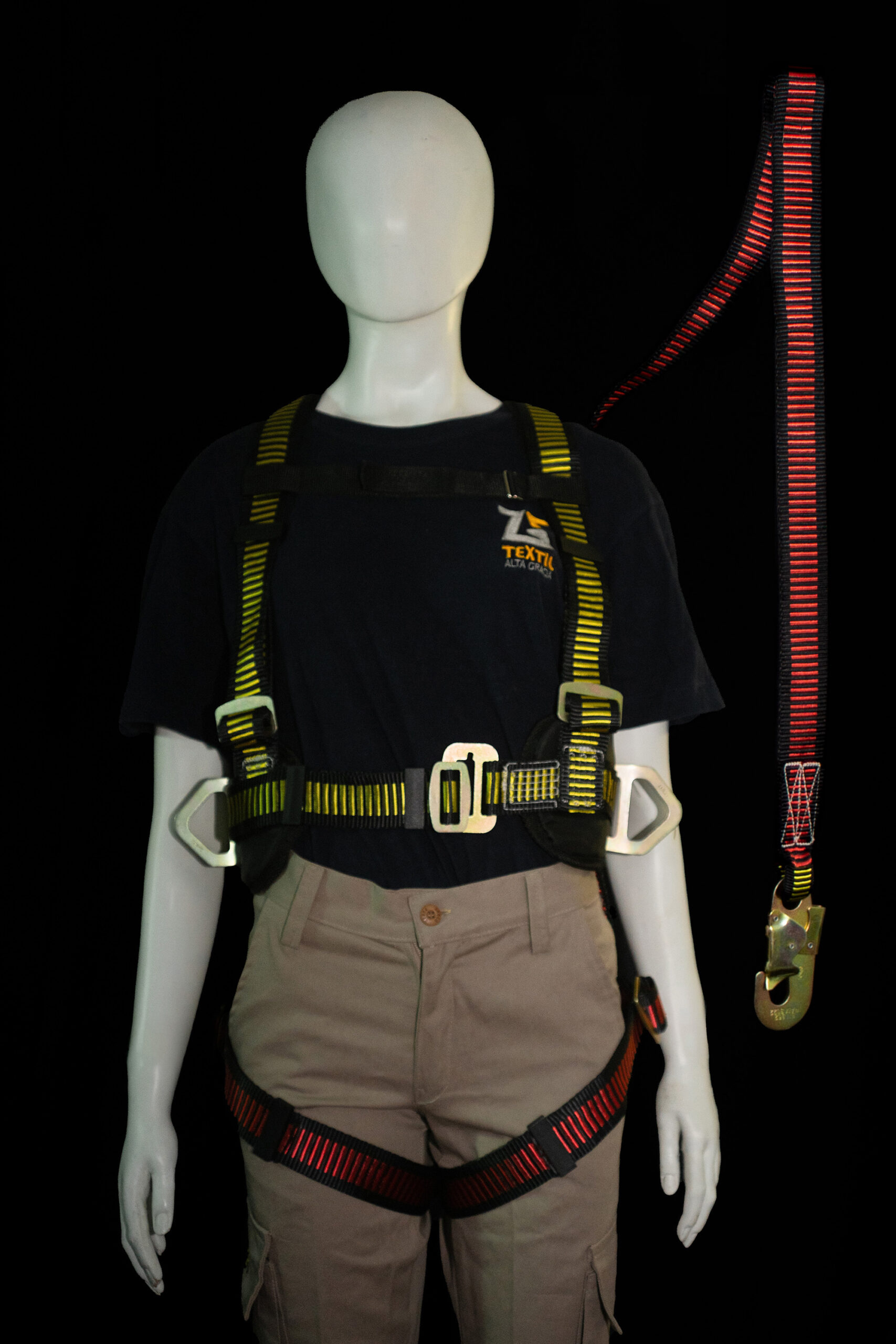 Arnés completo C tipo 4 con protección lumbar, con cabo dorsal y mosquetón 18 mm.
