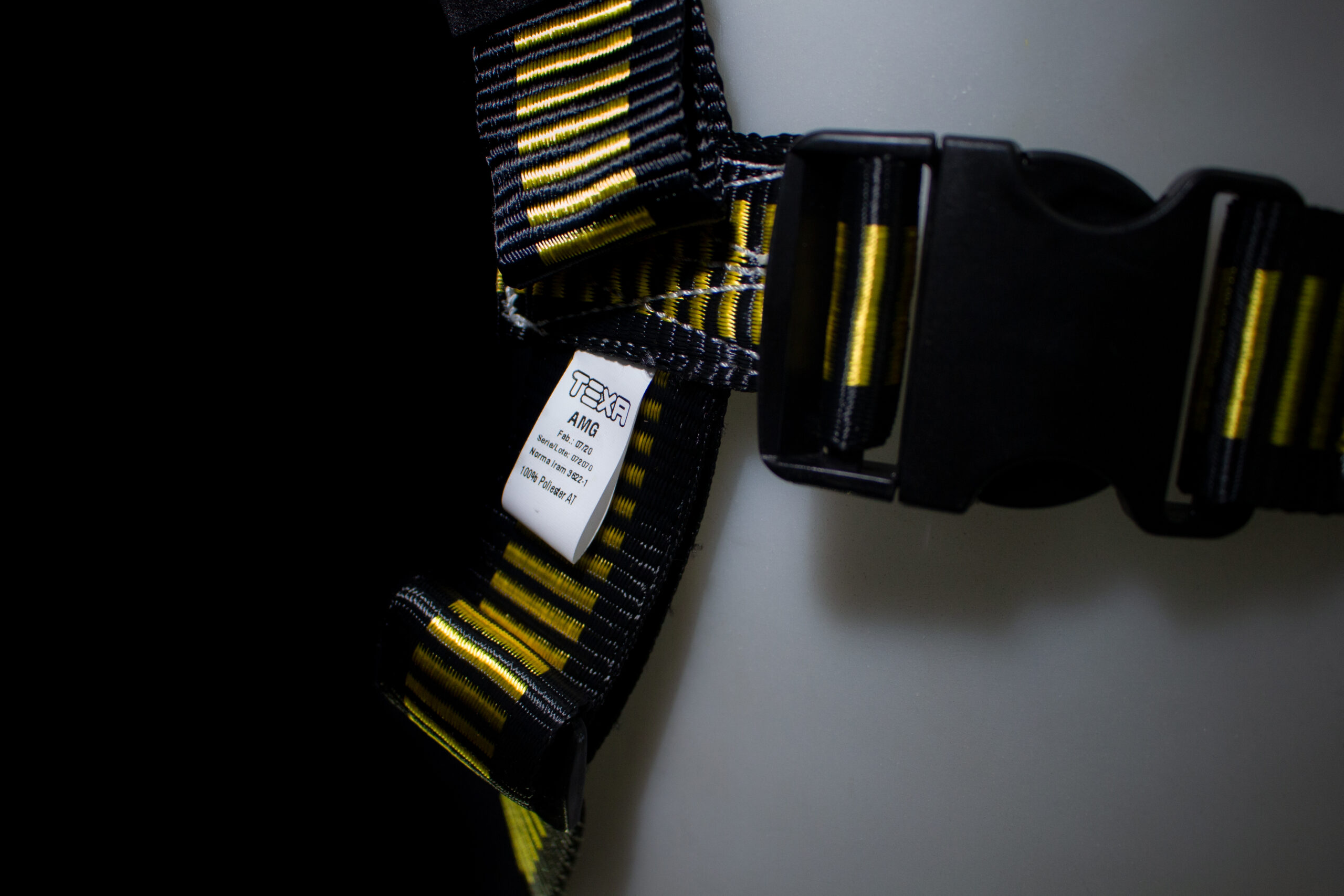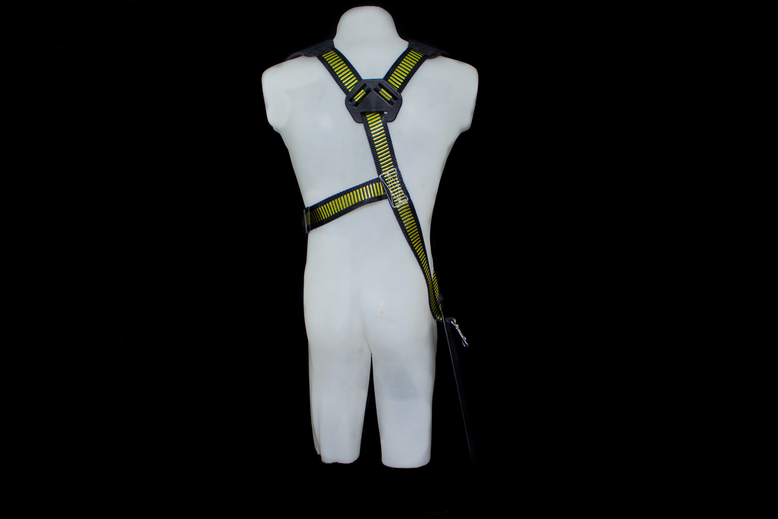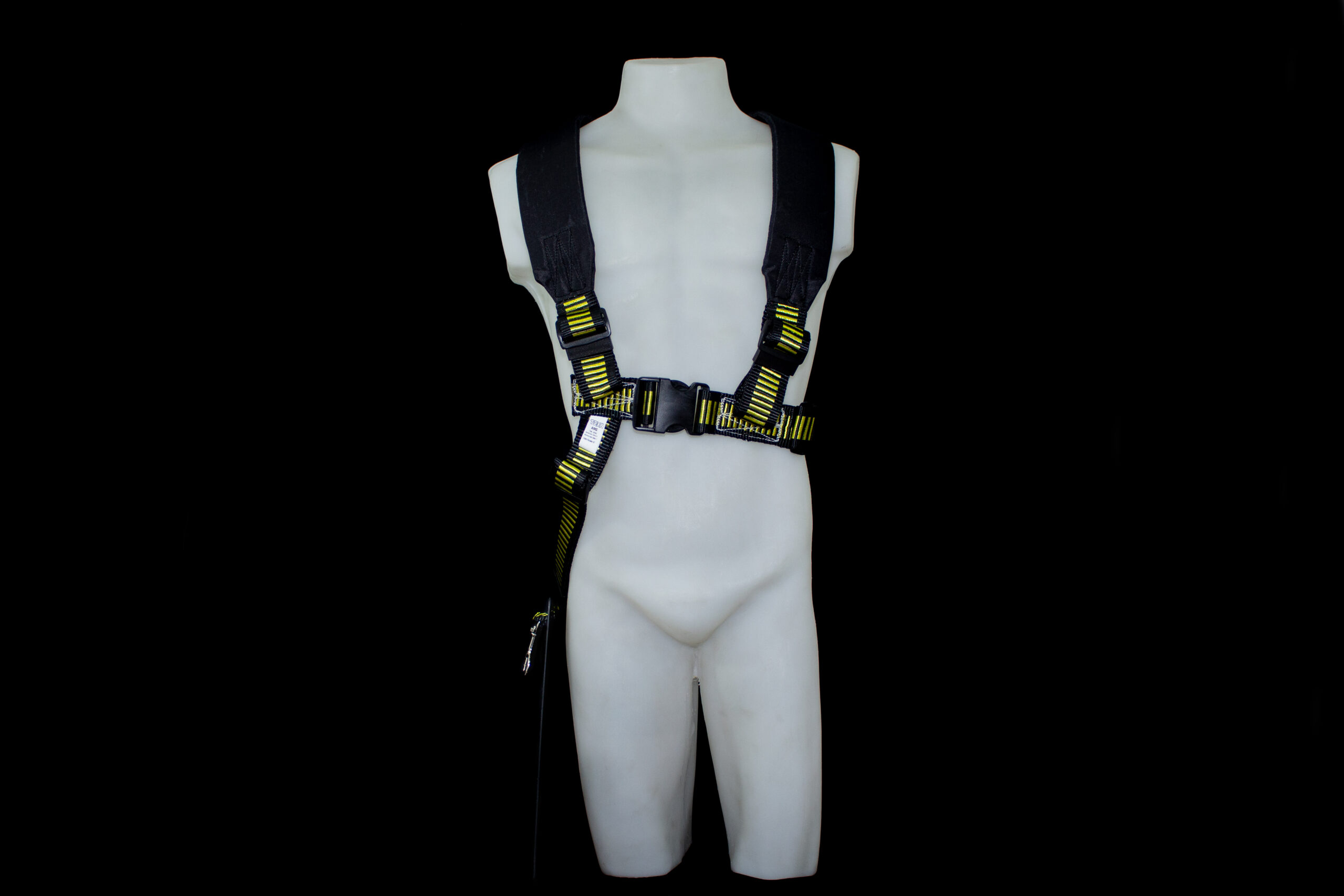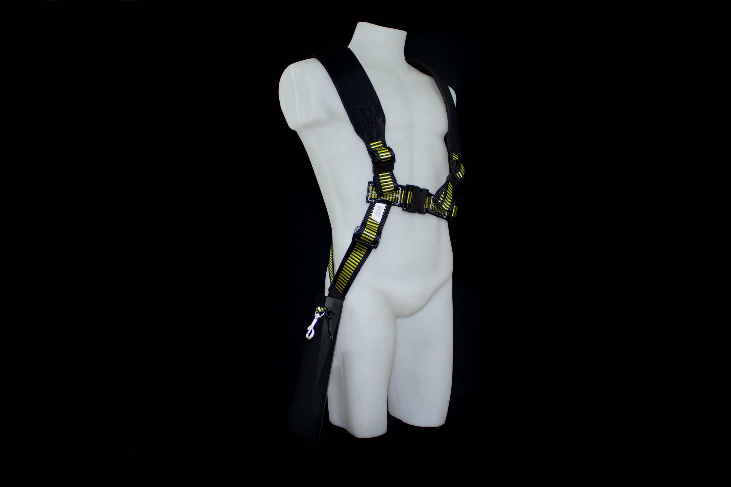 Arnés regulable para motoguadaña con aolchado y protección pierna.
