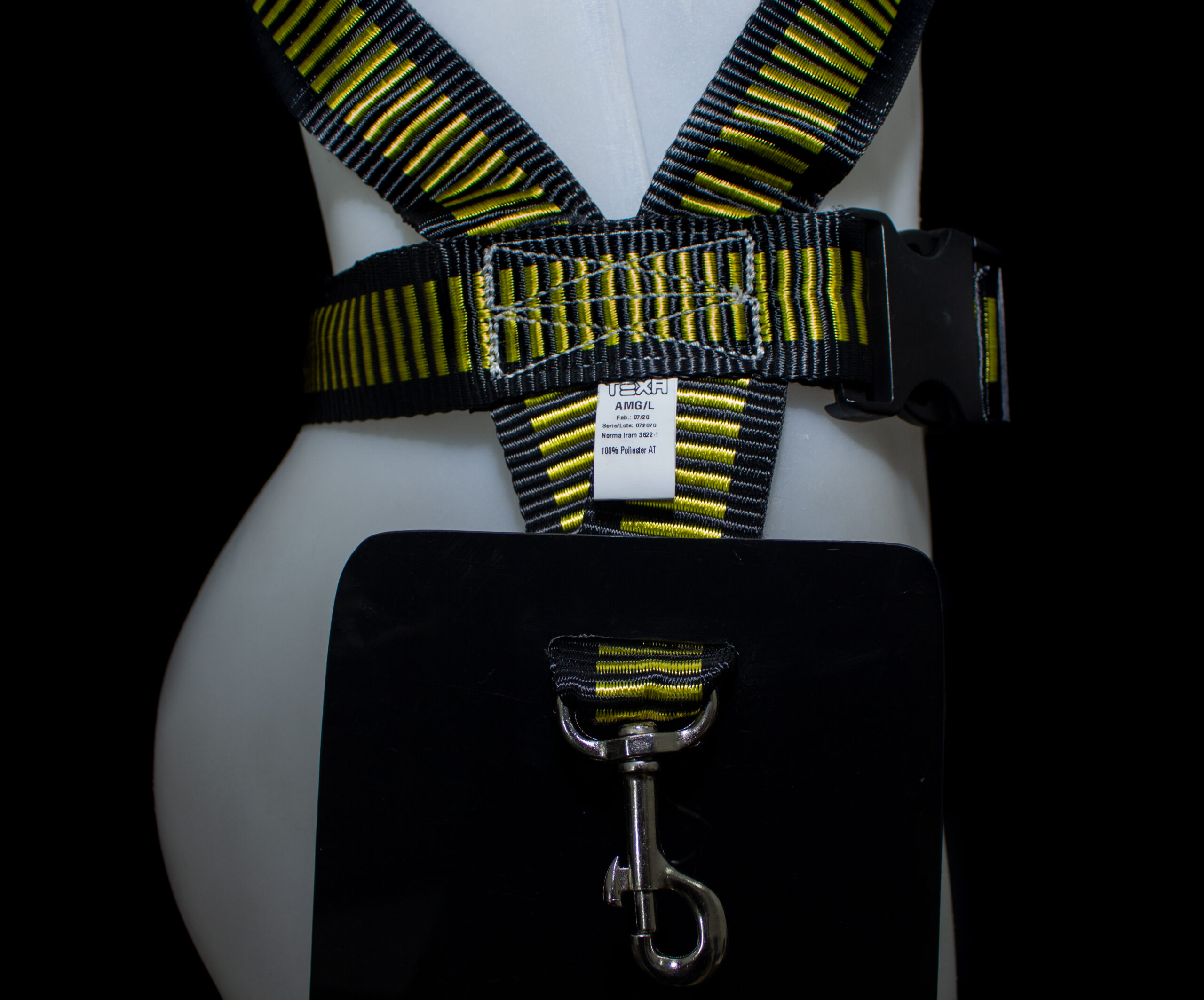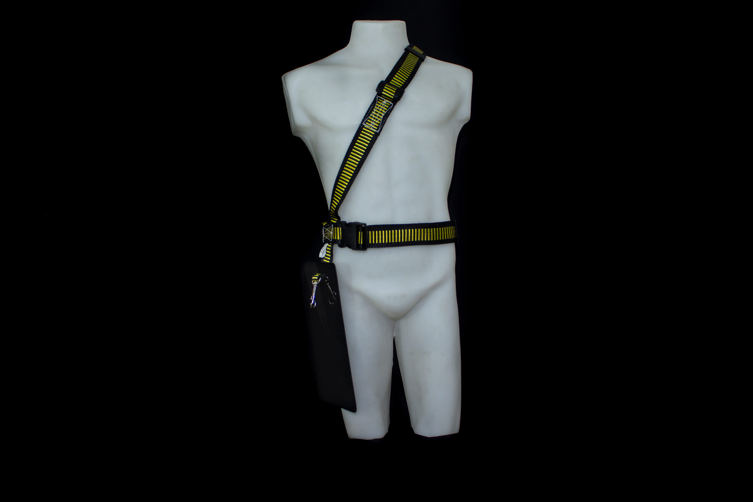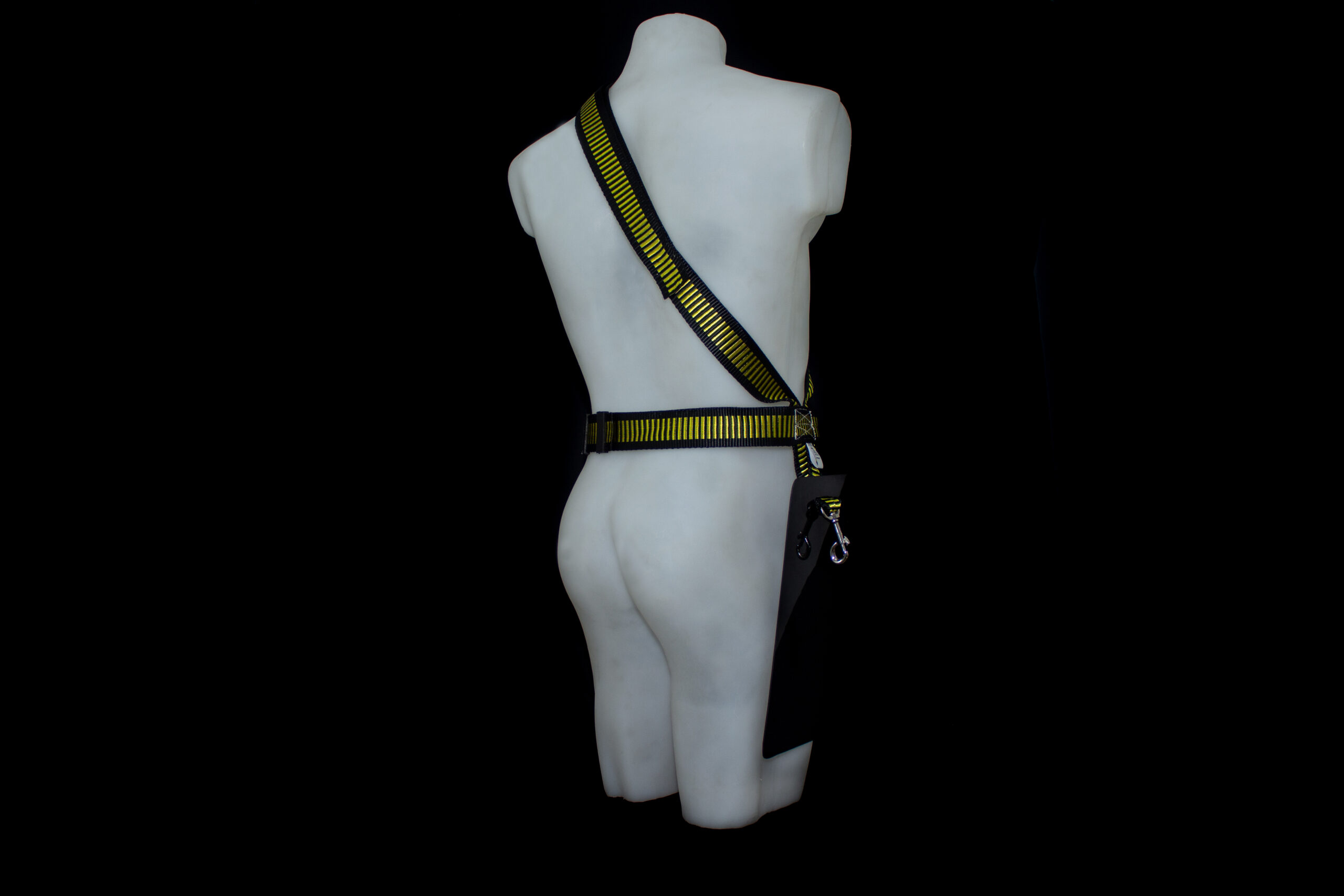 Arnés regulable y liviano para motoguadaña con protección pierna.