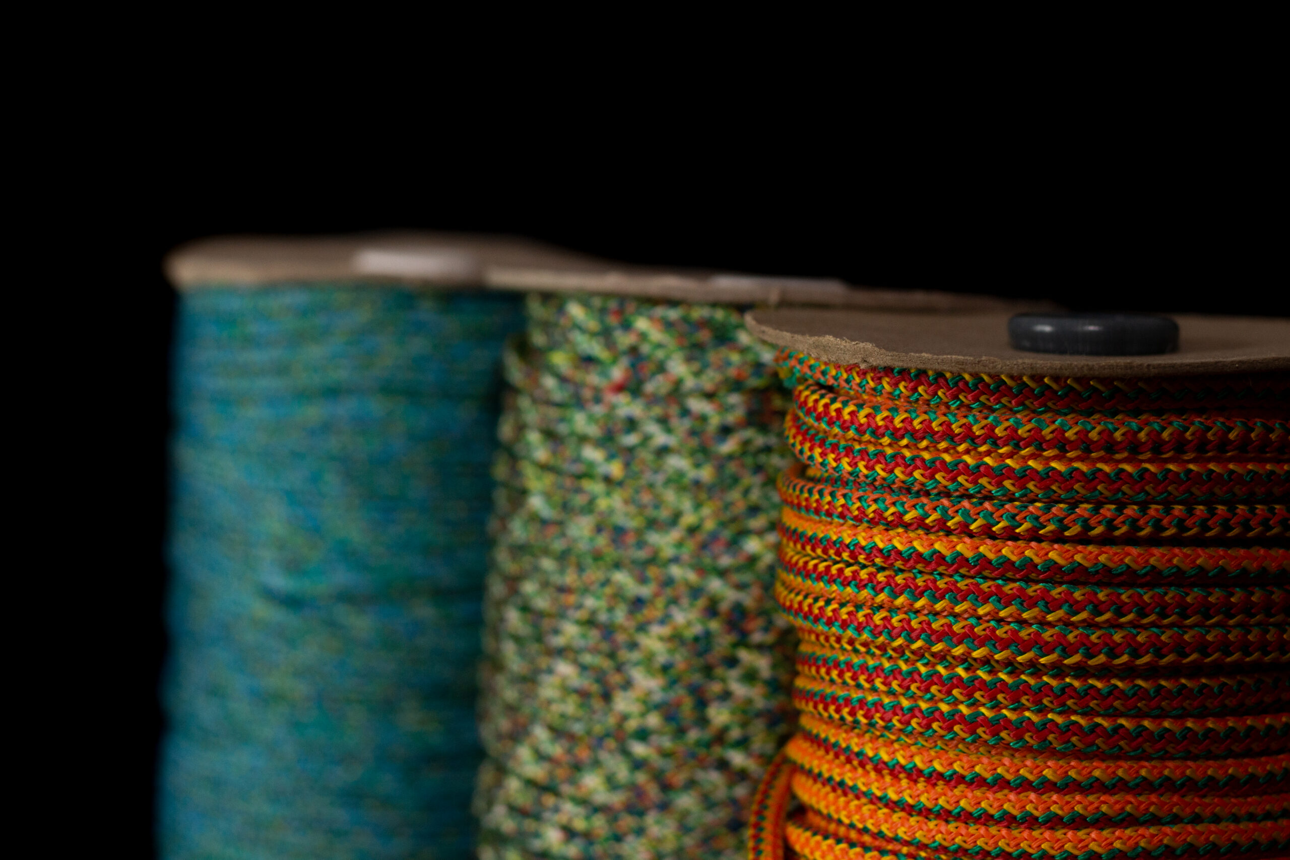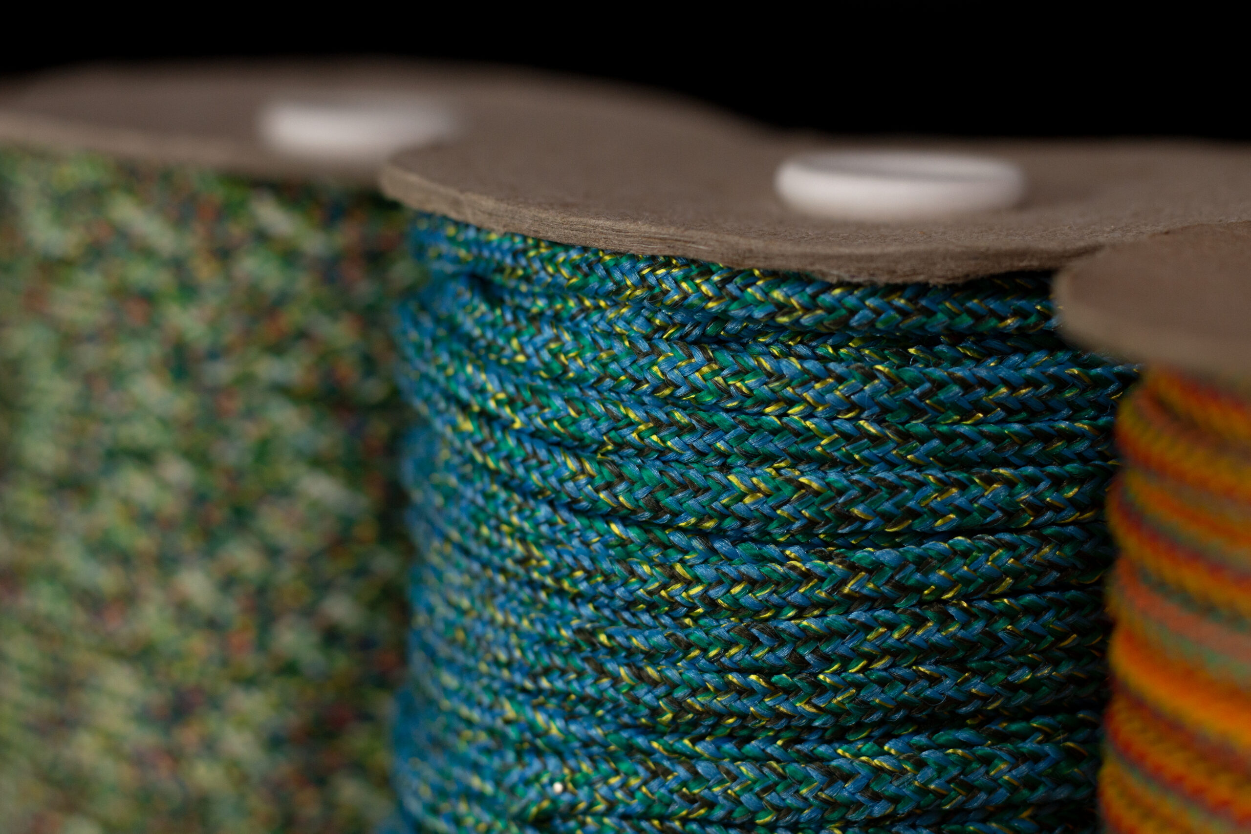Cordón polipropileno 8 mm. Colores: turquesa jaspeado/verde jaspeado/naranja jaspeado
