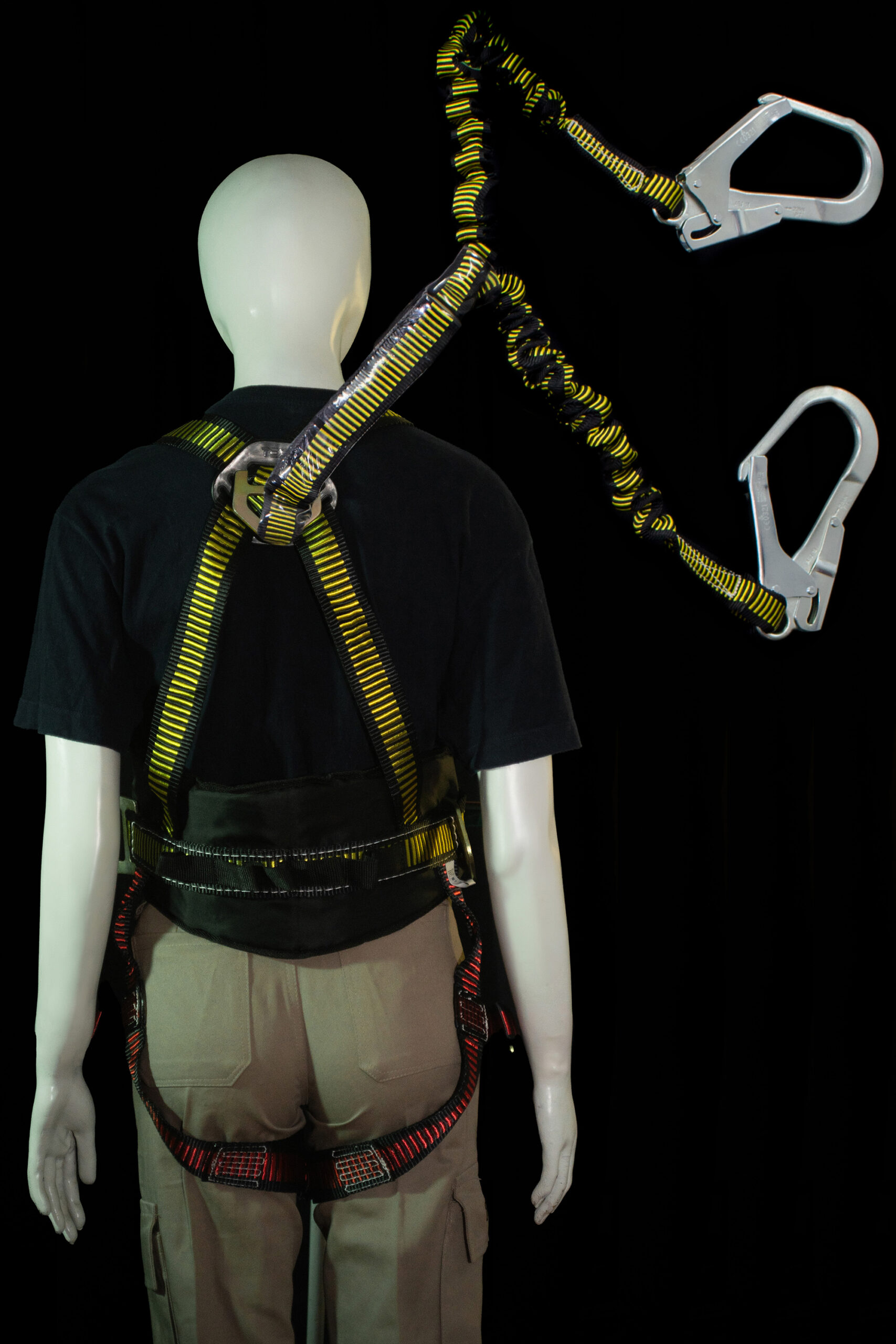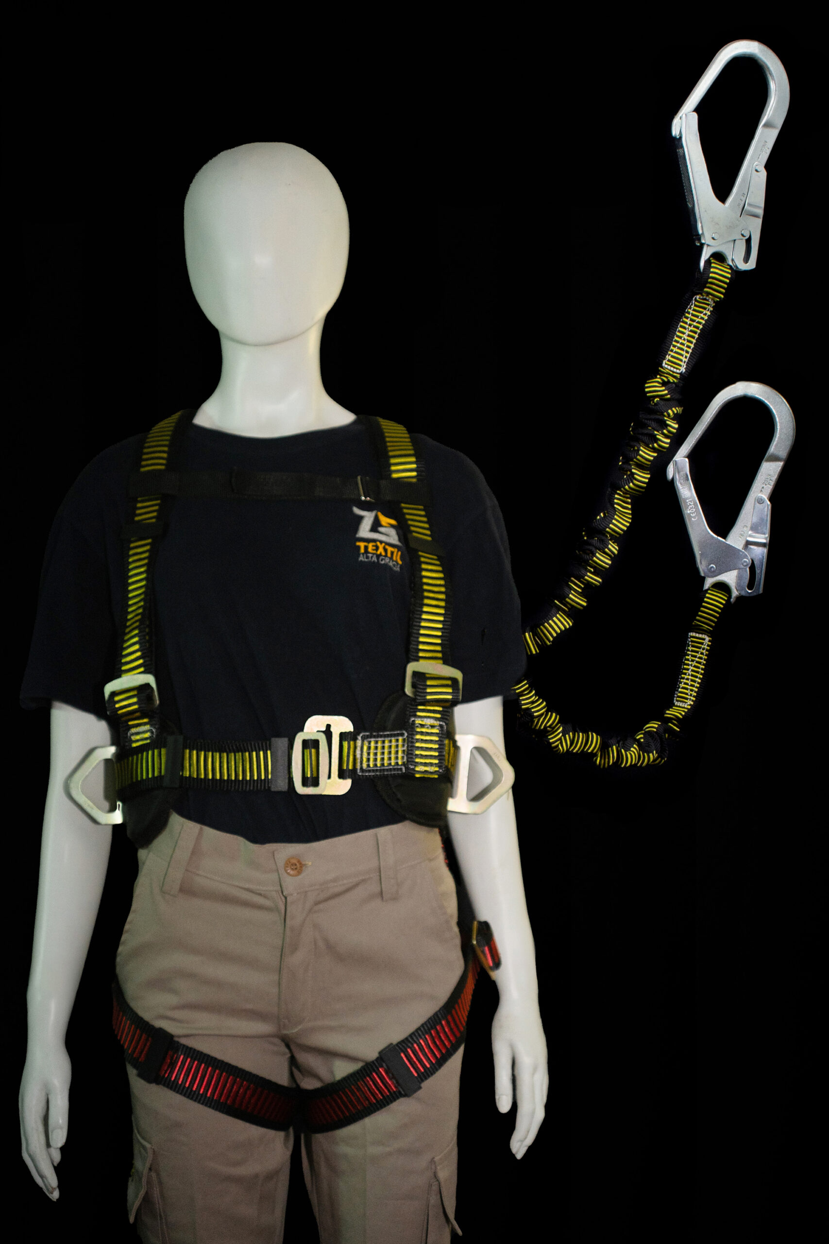 Arnés completo C tipo 4, con protección lumbar, con cabo dorsal en “Y”, con mosquetones de 55 mm.